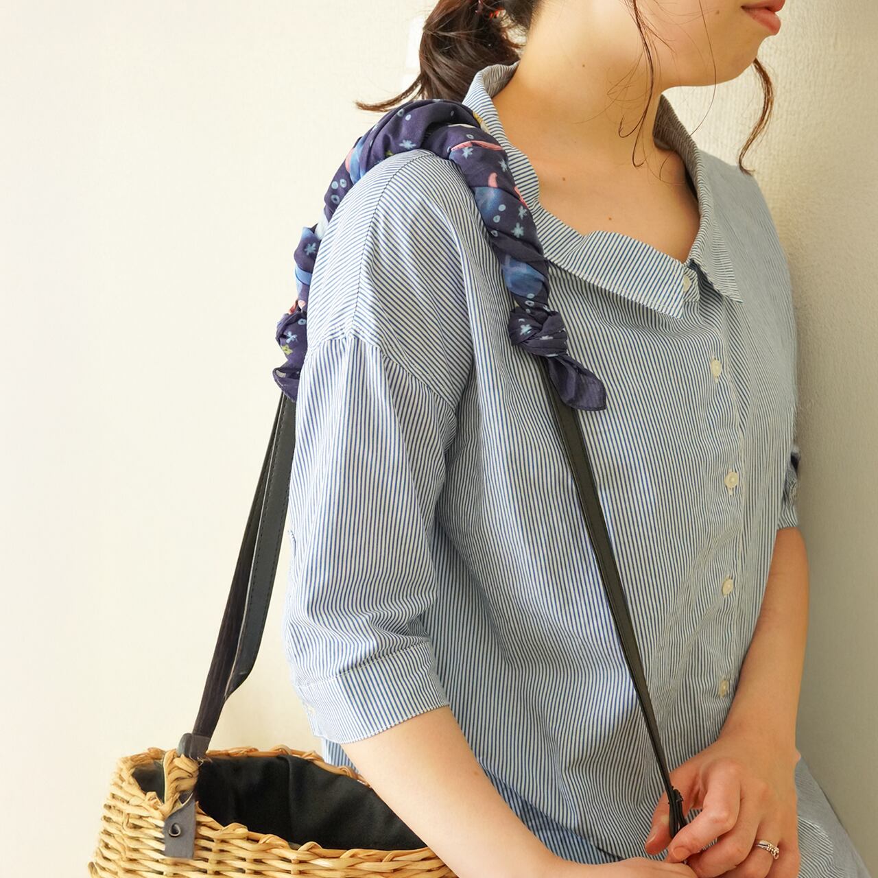 コーディネートのアクセントとしてはもちろん、夏の汗対策にも活躍するハンカチスカーフです。